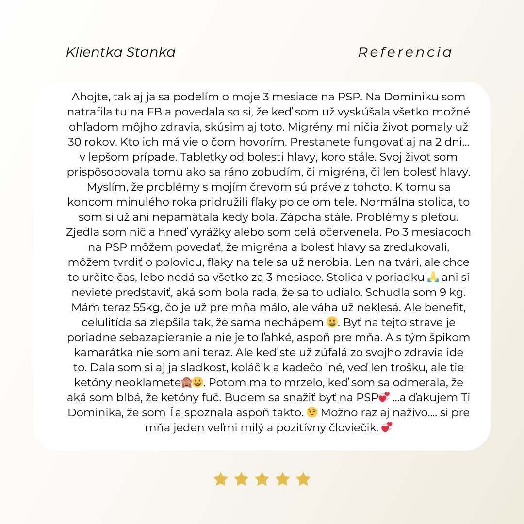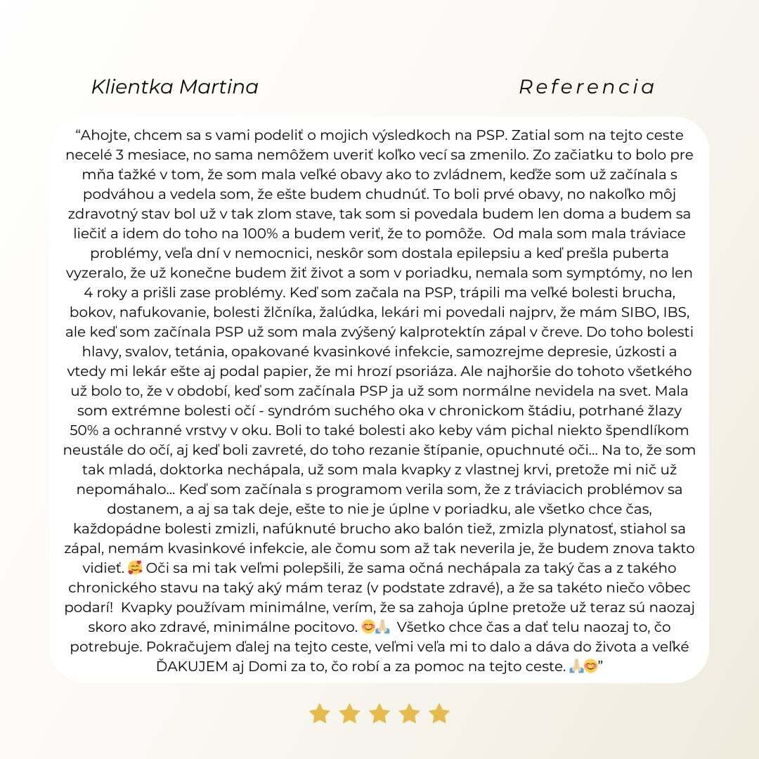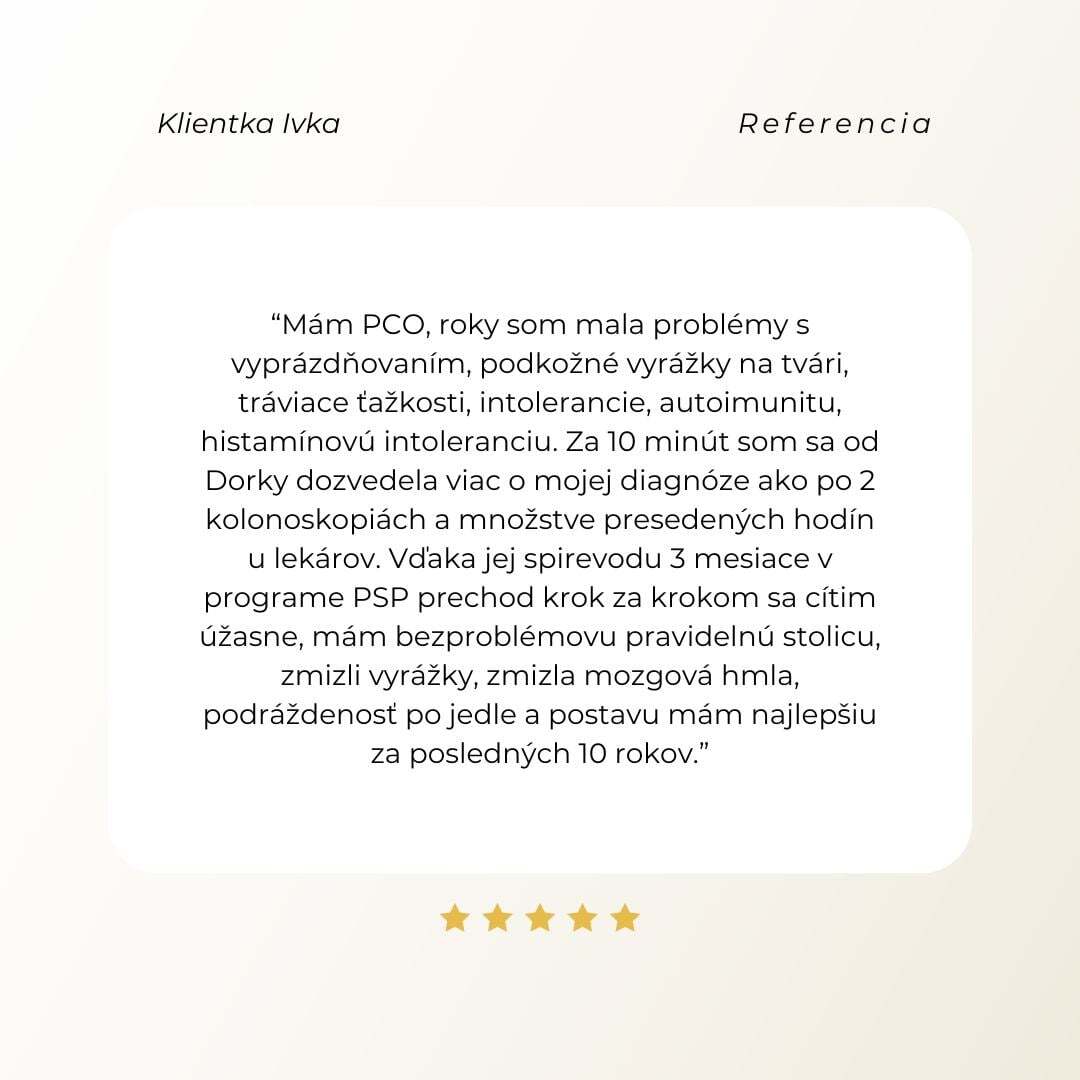 Mala som skvelé výsledky, ale mňa samú sužovali potravinové intolerancie, bolesti kĺbov, seborea, chronické zápaly, náladovosť, silné PMS, úzkostné stavy, tetánia a mohla by som pokračovať ďalej...